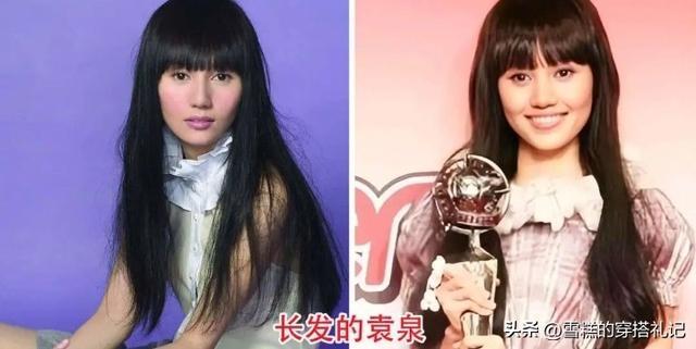 我们可以看到,以袁泉这种大五官美女来驾驭黑长直,都有翻车的一天。特别是像袁泉一样,有着高颧骨深陷眼窝的女人,到了中年,本来面部胶原就会有所流失,搭配上厚重刘海,会显得面部疲态感更强,脸颊更加凹陷,千万不要选。