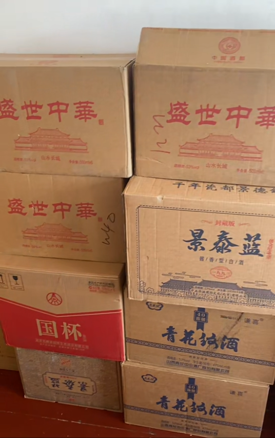 他说,他数了数,从包装看,大大小小的白酒有79箱,红酒有2箱,每箱有2瓶装的,也有4瓶装的,还有6瓶装的,“我不仅收到了这些白酒红酒,还收到了1个冰箱和7部手机。”