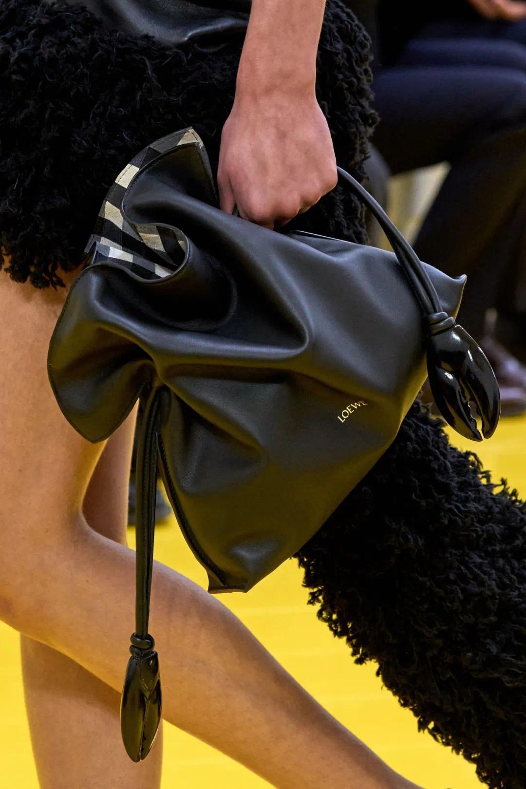 秀前预告中,出现了一只充气皮革工艺打造的皮革蟹钳——这一充满幽默感的创作,成为本次大秀的邀请函。灵感源自艺术家Cosima von Bonin的动物雕塑,采用绒面制作,内里充盈空气,呈现出宛如“充气”般的饱满外观,恰是它们看起来讨喜的关键。