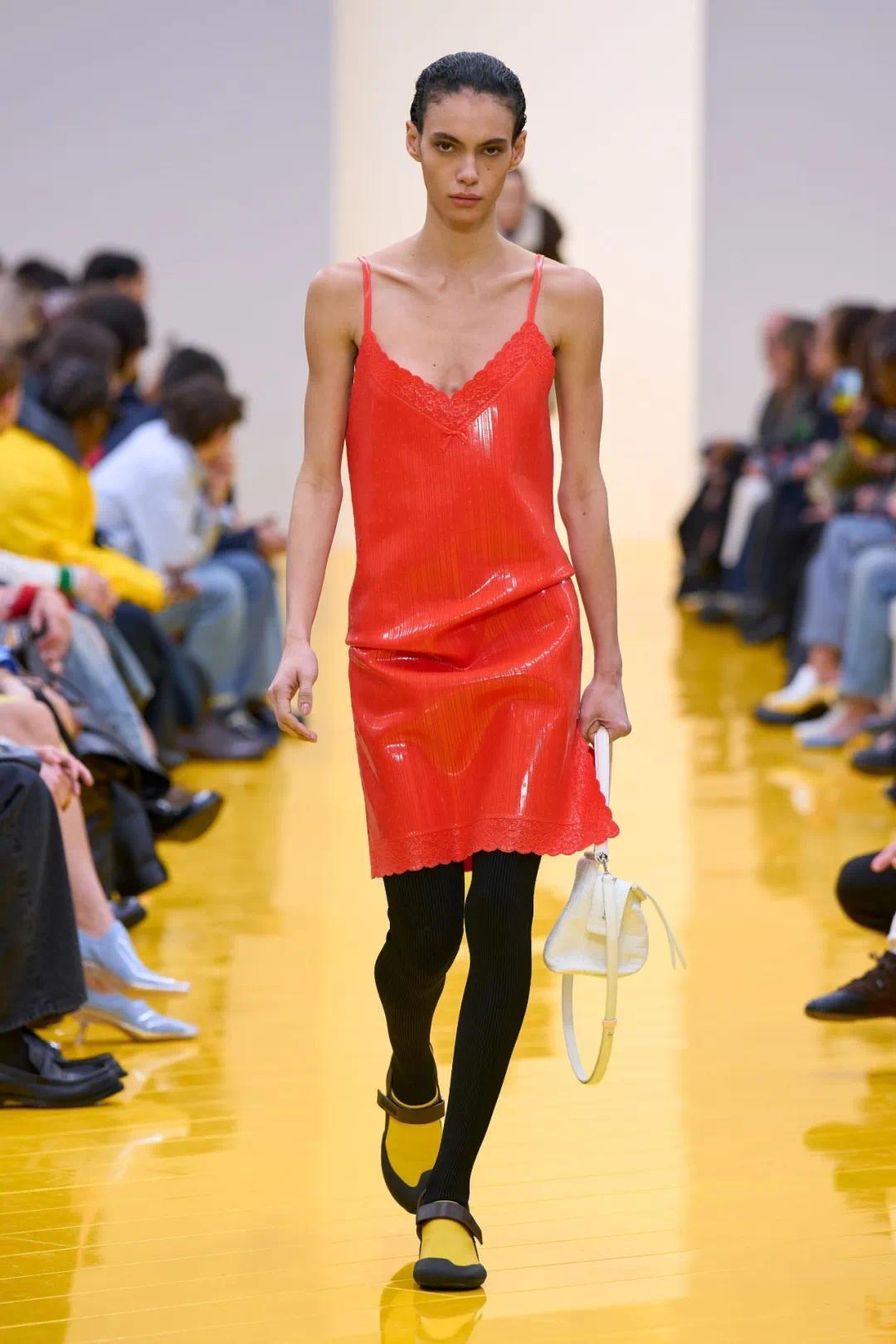 从大秀现场鲜黄色的乳胶地面,即可知晓Jack McCollough与Lazaro Hernandez对于鲜明视觉的坚持。事实上,自接手LOEWE以来,两人便以缤纷纯粹的彩色图像构筑起独具辨识度的品牌语言。