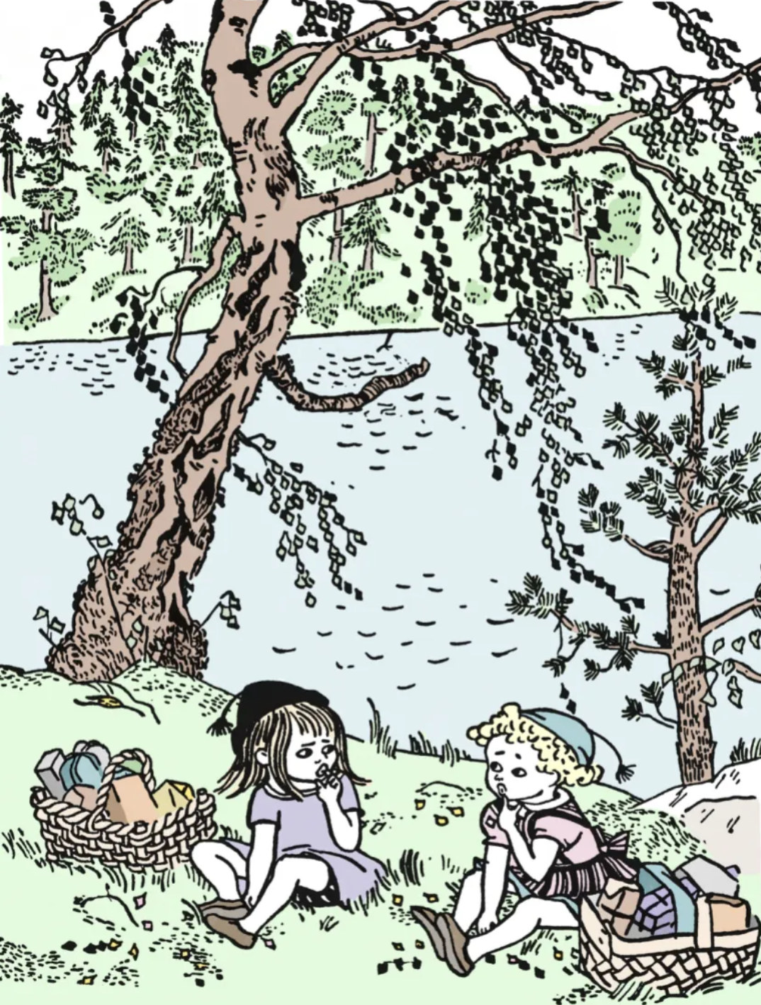 除了游戏,劳动也是生活的重要部分,书中对瑞典乡村的劳动场景有丰富生动的呈现。孩子们间苗、种土豆、收牧草,丽莎和安娜给大人们跑腿买杂货,路上为香肠作了一首歌。孩子们一起给生病的老师做饭,一起赶着马车去磨坊磨面……孩子们在劳动中锻炼身体,增长技能,学习承担责任,还把劳动也变成游戏的一部分。