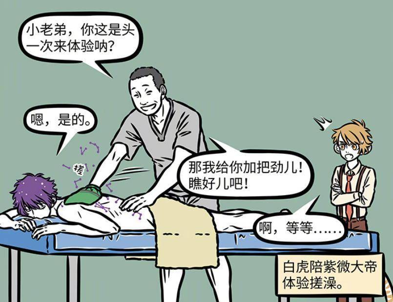 除了理发服务,白虎还带着紫薇大帝去体验了一下搓澡服务。