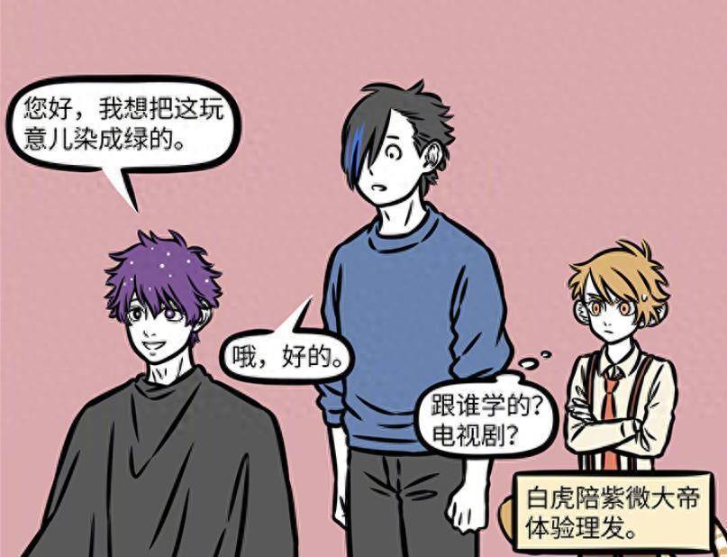 而熟悉紫薇大帝的白虎则在心里面腹诽,紫薇大帝剪头发染成绿色的行为是跟谁学的,难道是跟电视剧。